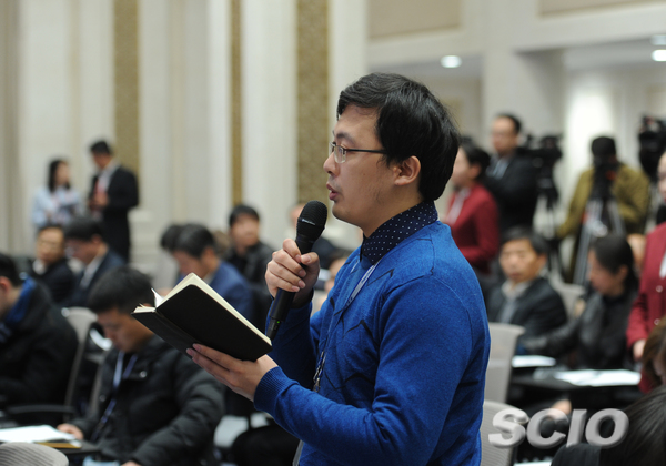 光明日报记者提问(赵一帆 摄)